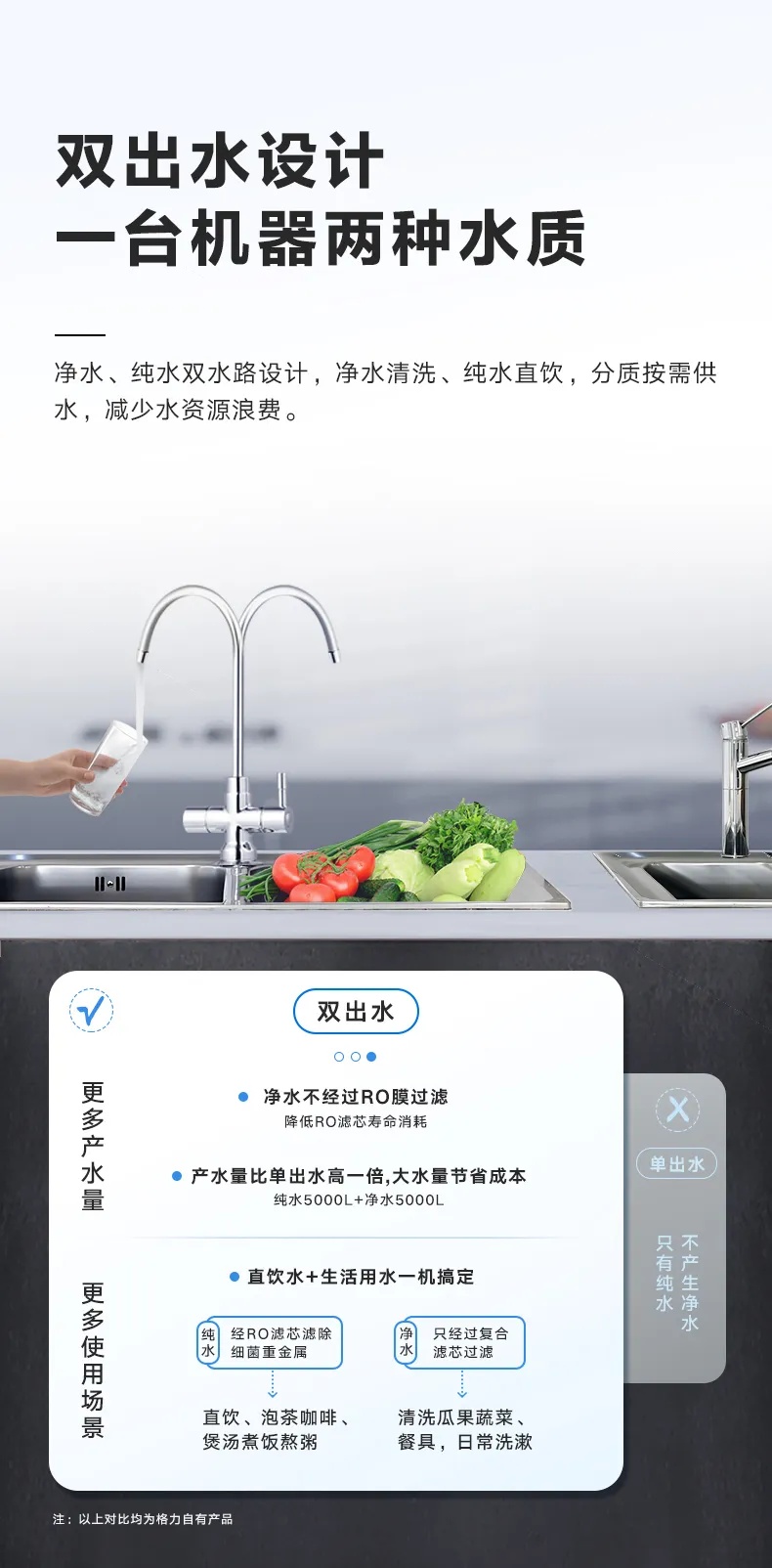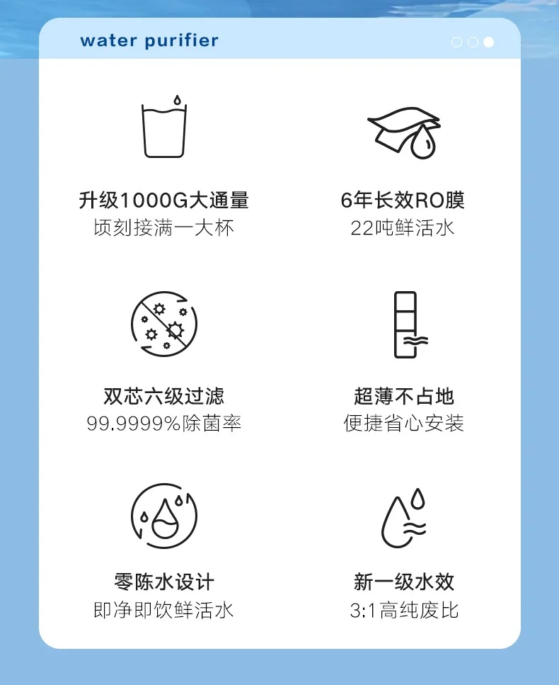 格力GREE厨下净水器家用RO反渗透1000G通量直饮水机自来水过滤器