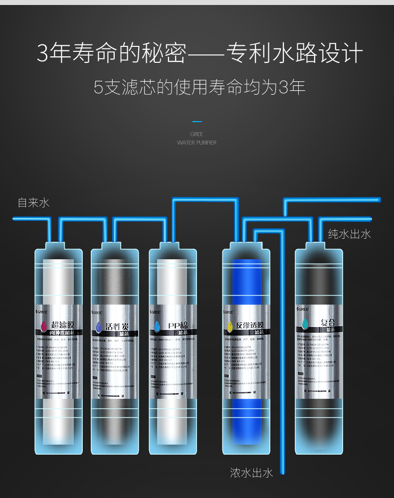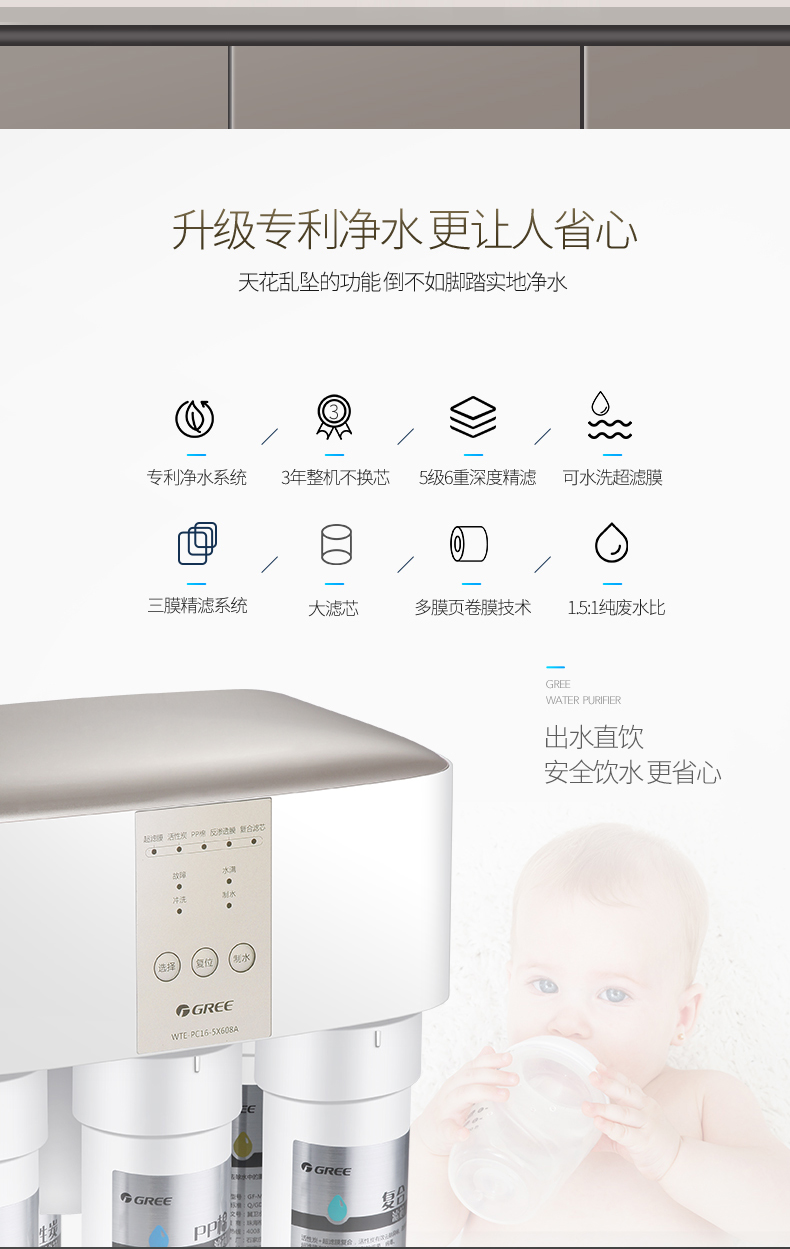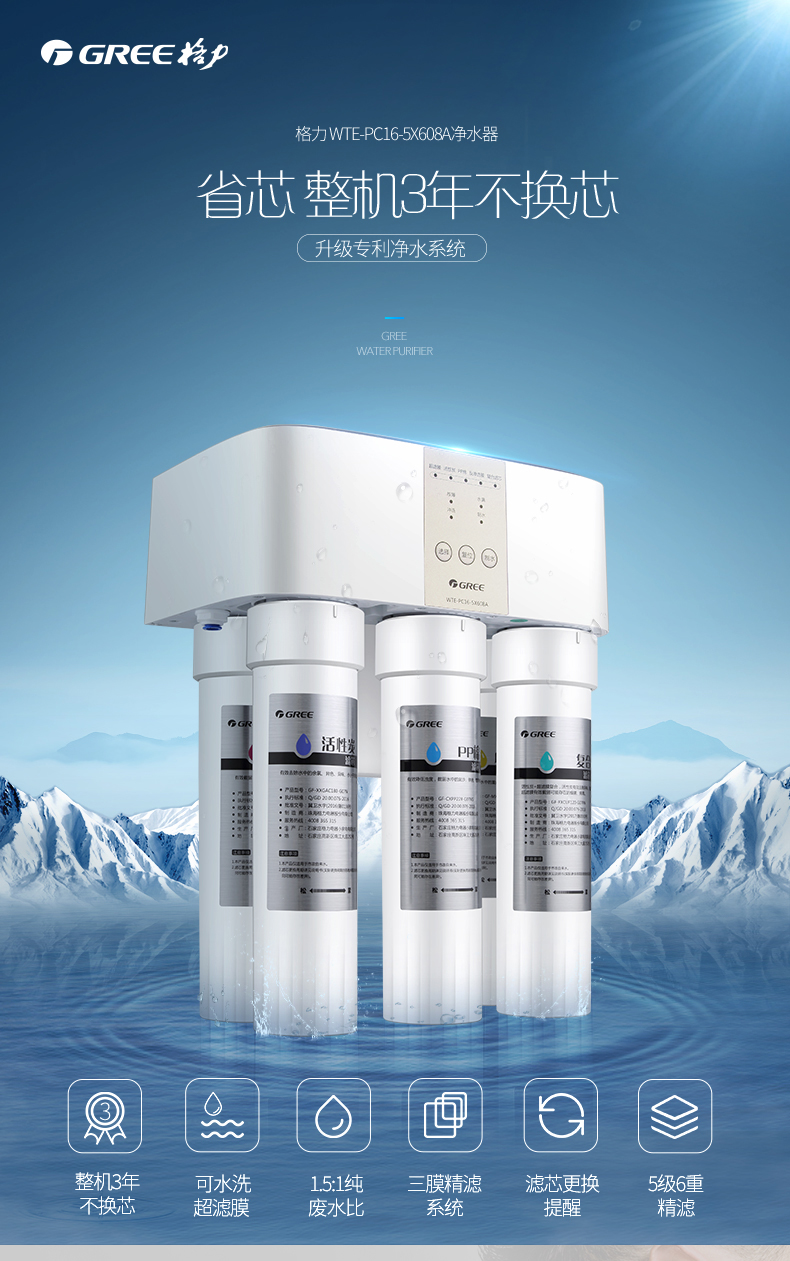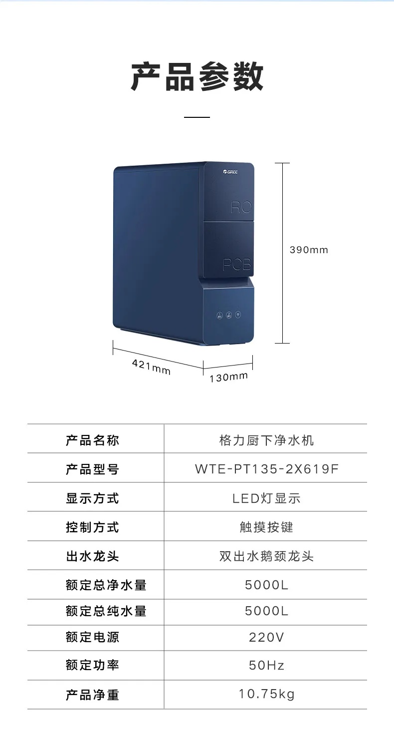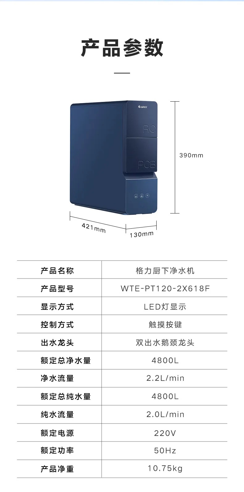 格力净水器RO反渗透家用厨房厨下式直饮净水机 WTE-PC16-5088